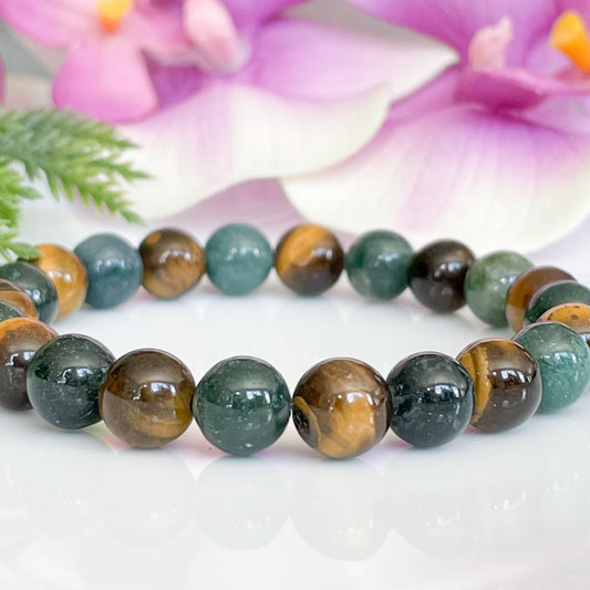 Green Moss Agate and Tigers Eye Healing Crystal Bracelet