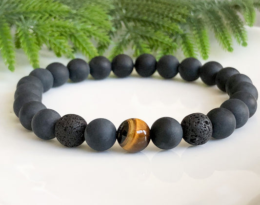 Men's Tigers Eye and Black Onyx Aromatherapy Bracelet