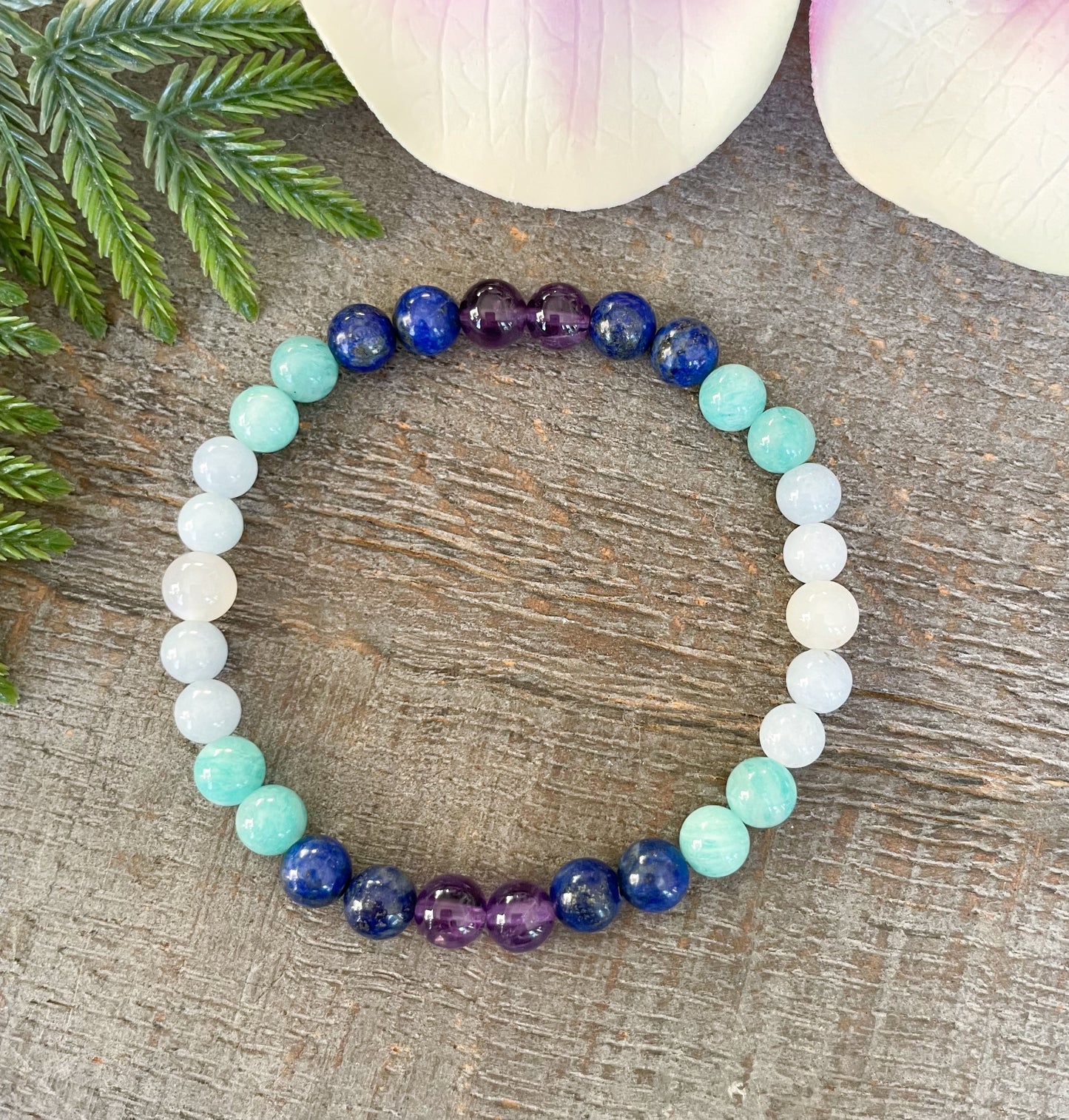 This beautiful Pisces stone bracelet is made with genuine 6mm Amethyst, Lapis Lazuli, Amazonite, Aquamarine, and Moonstone to bring out a Pisces' best qualities. This minimalist style bracelet would make a lovely gift for someone’s birthday or any occasion. Even if you aren't a pisces, you can still enjoy the benefits of this Pisces zodiac sign bracelet as it looks good on anyone!
