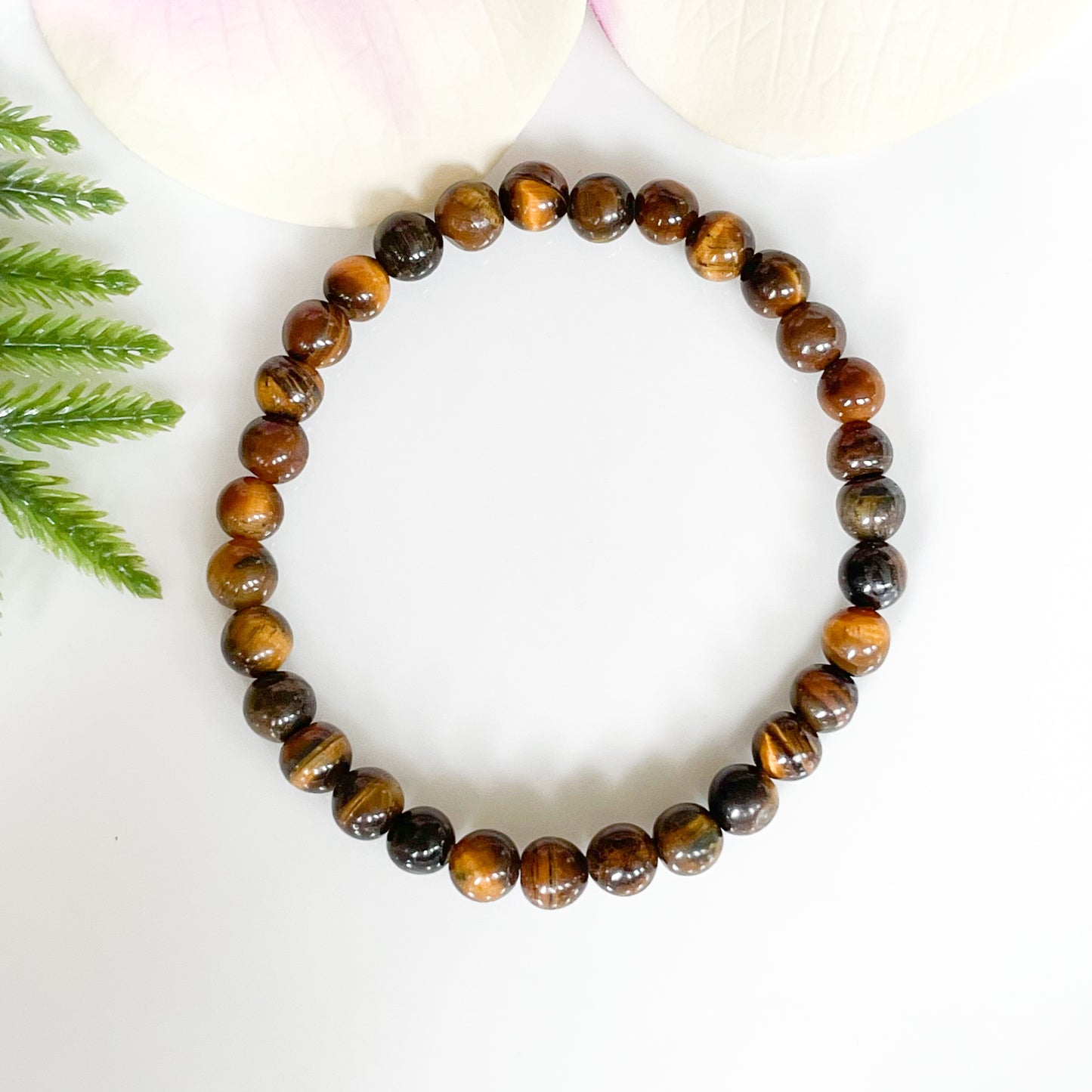 Bring more luck, wealth, and abundance into your life with this 6mm tigers eye gemstone bracelet! This beaded bracelet features genuine 6mm tiger's eye gemstone beads. A beautiful layering bracelet for men or women!